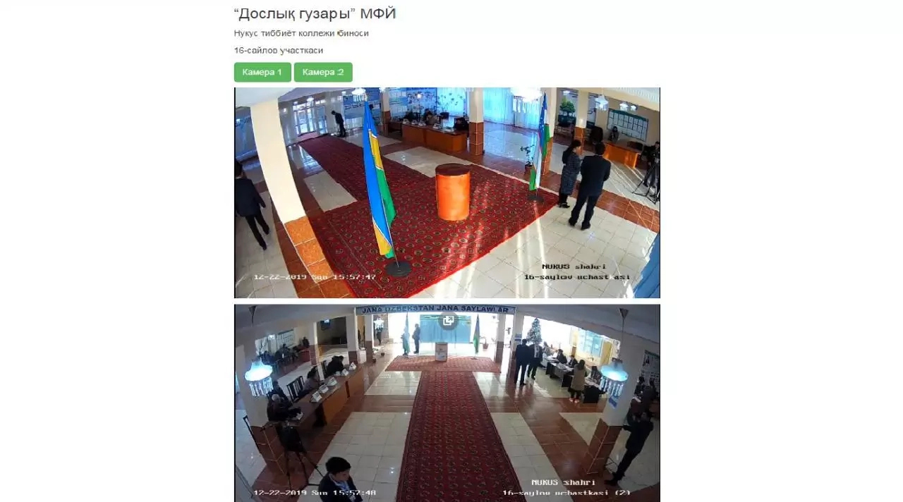 Өзбекстан бойынша 20 сайлаў участкасында, соның ишинде, Қарақалпақстан Республикасындағы 4 сайлаў участкасындағы болып атырған процеслерди бақлап барыўыңыз мүмкин.