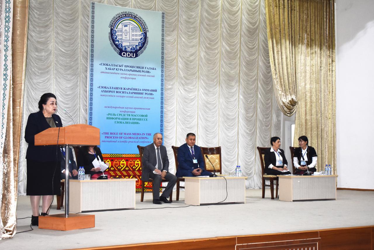 Онда «Қарақалпақ әдебияты» газетасының бас редакторы, сенатор Г.Аннақлычева «Өзбекстанда жаңаланыў процеси ҳәм журналистика», Қарақалпақстан жазыўшылар аўқамының баслығы К.Кәримов «Ҳәзирги қарақалпақ журналистикасының тийкарғы машқалалары», Украинаның Киев миллий мәденият ҳәм көркем өнер университети доценти А.Полисученко «Технологии X-Reality в мультимедийной журналистике: проблемы и перспективы», Қырғызстанның Ош мәмлекетлик университети доценти З.Маматжанова «Формирование цифровой грамотности студентов», университеттиң журналистика кафедрасы баслығы З.Оразымбетова «Заманагөй журналист кадрларды таярлаў мәселелери» атамасындағы баянатларын жасады.